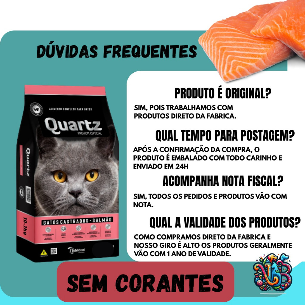 | Quartz Ração Premium Especial Gatos Castrados Salmão 10,1Kg este produto | R$ 127,80 | 25% | 5.0/5 | 30 |