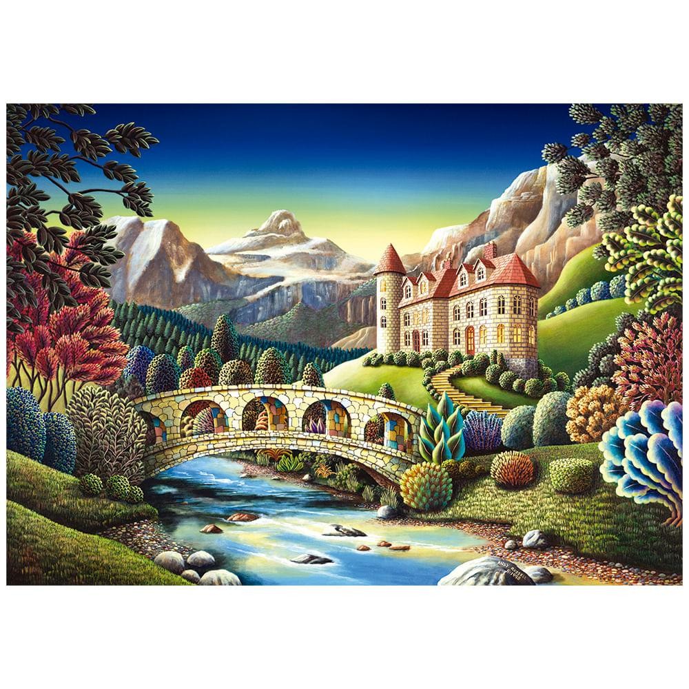 A magia do castelo com nosso quebra-cabeça! Imagine um castelo majestoso, situado em um vale verdejante, com uma bela ponte de pedras que cruza um rio calmo e sereno. Ao fundo, montanhas imponentes se erguem, enquanto a vegetação colorida ao redor do castelo cria um cenário encantado A partir de 10 anos Quantidade de peças: 1008 Dimensões aproximadas: 50 x 70 cm Dicas para montagem: 1. Confira o número de peças com a informação existente na embalagem. 2. Providencie uma base (papelão ou madeira) um pouco maior que a imagem a ser montada. As dimensões da imagem podem variar em até 1%. 3. Separe as peças com cantos retos e monte, sobre a base, toda a borda da imagem a ser montada. 4. Separe as demais peças, agrupando-as pelas cores, para facilitar a sua localização. 5. Quando chegar a uma área com muitas peças da mesma cor, separe-as pelo formato. 6. Mantenha o quebra cabeça em lugar plano, enquanto estiver fazendo a montagem. 7. Depois de montar, certifique-se de que todas as peças estão bem encaixadas, e nos lugares corretos.