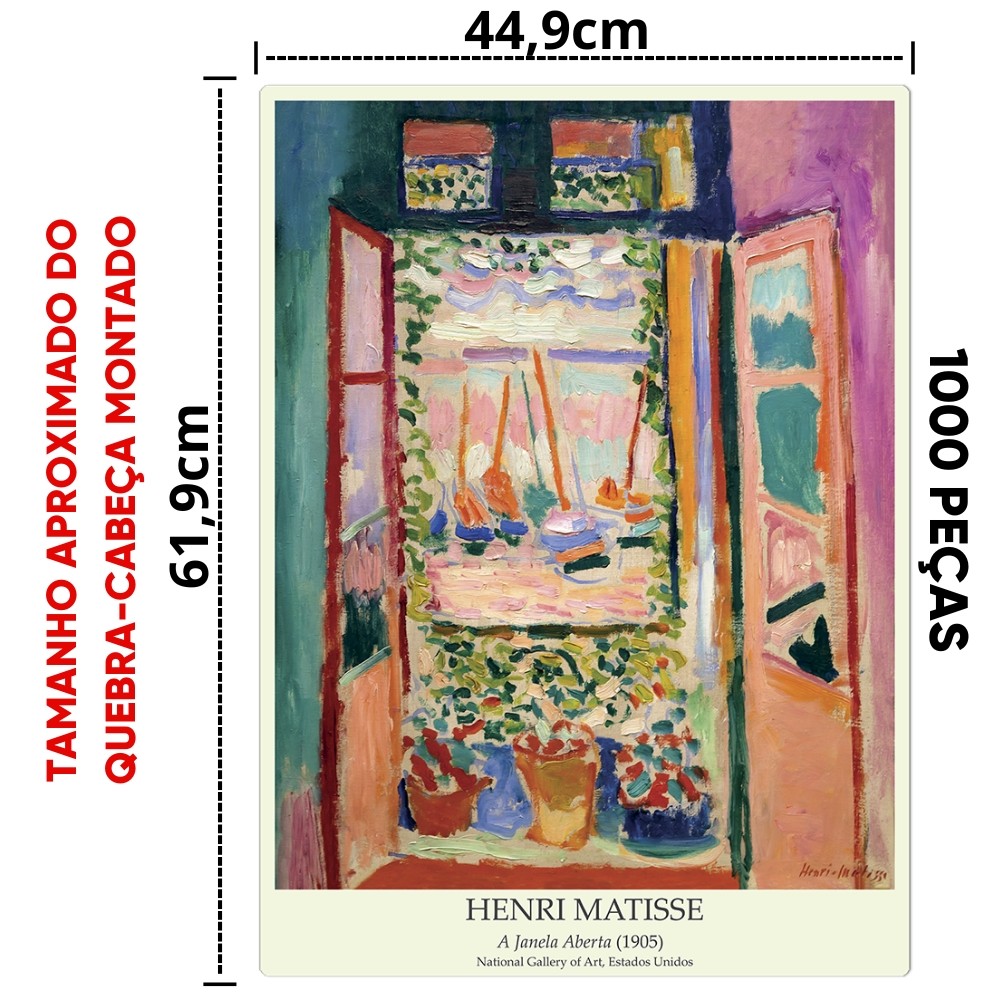 QUEBRA CABEÇA A JANELA ABERTA HENRI MATISSE 1000 PEÇAS TOYSTER PUZZLE OBRA DE ARTE PINTOR QUADRO COR
