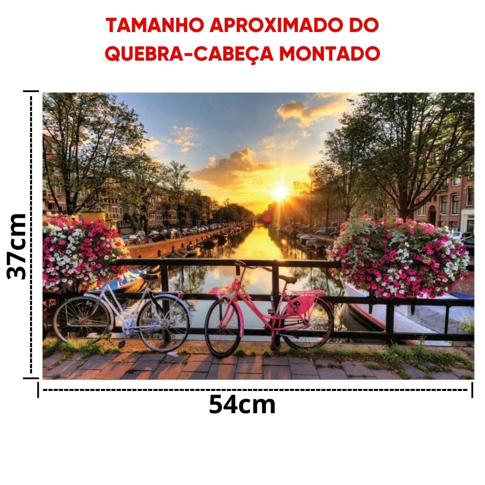 QUEBRA CABEÇA AMSTERDAM 500 PEÇAS PAIS E FILHOS PUZZLE PAISAGEM PONTOS TURÍSTICOS HOLANDA BICICLETA