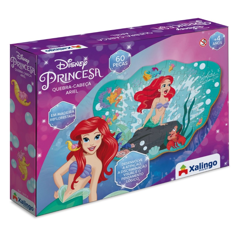 QUEBRA CABEÇA ARIEL DISNEY 60 PEÇAS MADEIRA REFLORESTADA XALINGO PRINCESA PUZZLE FILM BRINQUEDO JOGO