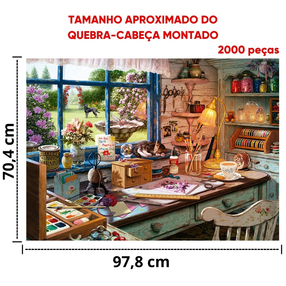 QUEBRA CABEÇA ATELIÊ 2000 PEÇAS GROW PUZZLE ARTE PINCEL OBRA ARTESANATO JARDIM FLOR QUADRO CÃO