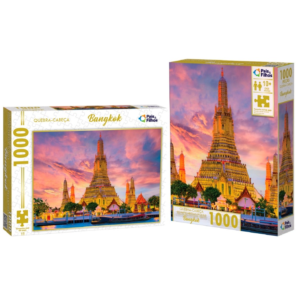 QUEBRA CABEÇA BANGKOK 1000 PEÇAS PAIS E FILHOS PUZZLE PAISAGEM TURÍSTICO TAILÂNDIA WAT ARUN TEMPLO &