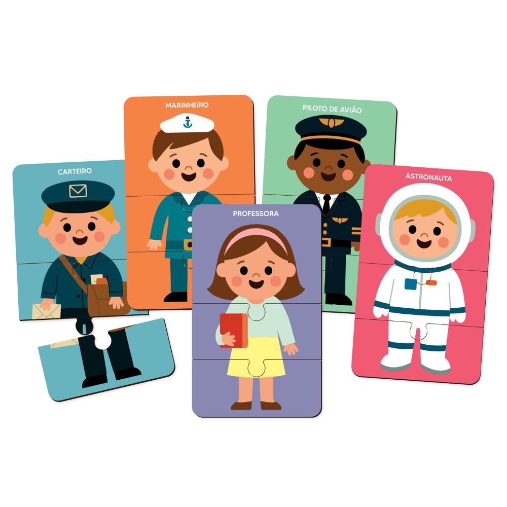 QUEBRA CABEÇA BRINCANDO COM AS PROFISSÕES MADEIRA BABEBI JOGO BRINQUEDO EDUCATIVO PROFISSÃO INFANTIL