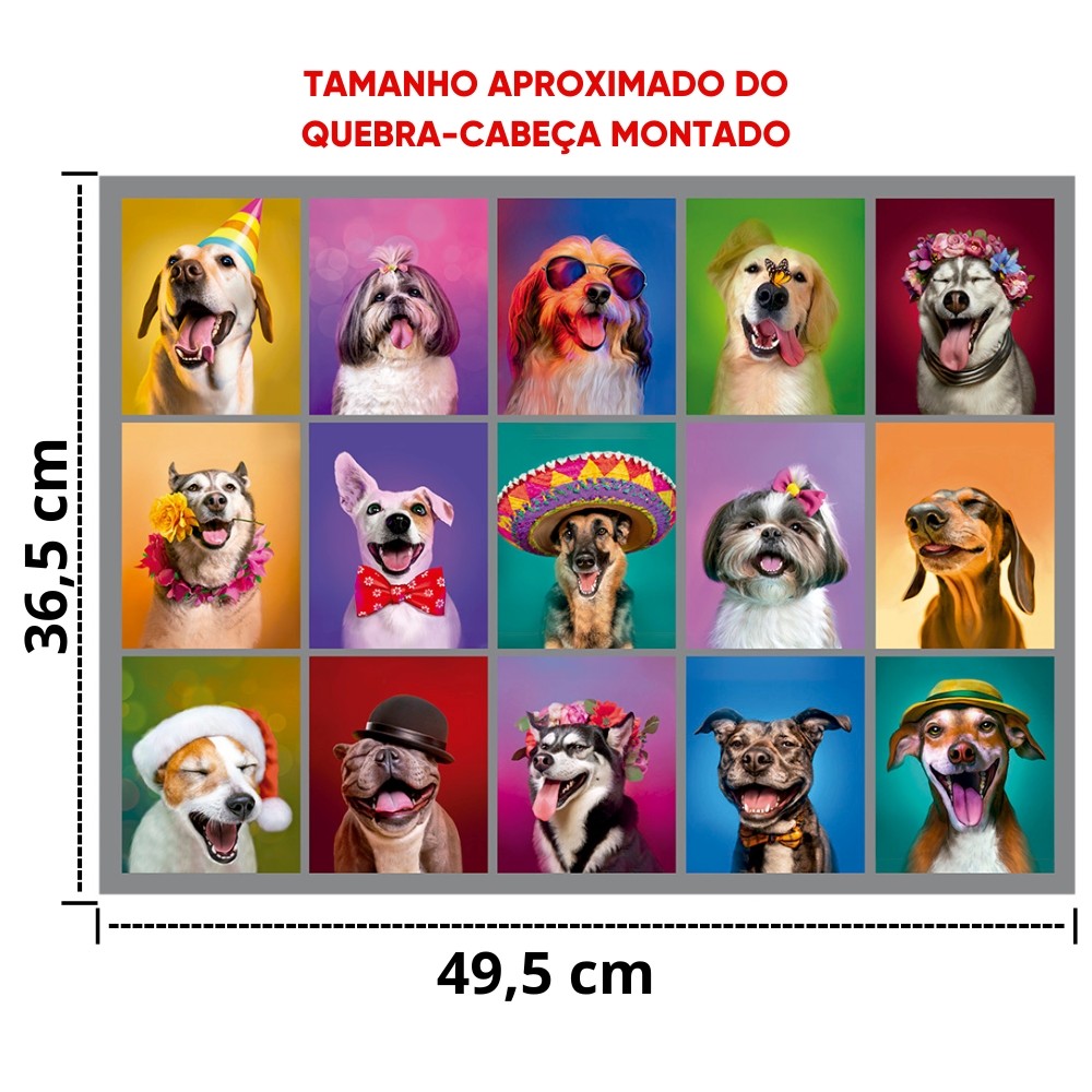 QUEBRA CABEÇA CÃES ESTILOSOS 500 PEÇAS GROW PUZZLE DOG CACHORRO DIVERTIDO ARTE CANINA DOGUINHO FOTO