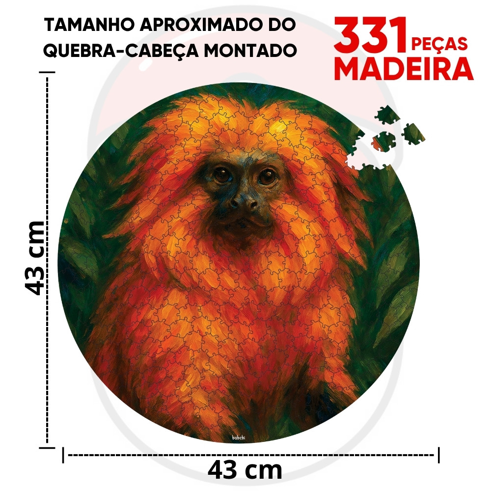 QUEBRA CABEÇA CIRCULAR MICO LEÃO DOURADO 331 PEÇAS MADEIRA BABEBI PUZZLE ARTE ANIMAL MACACO BRASIL