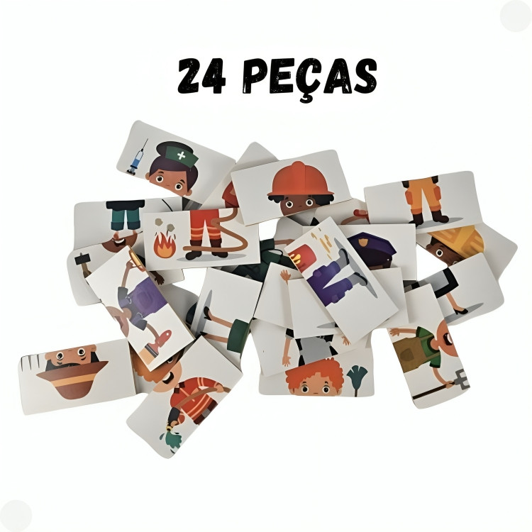DESCRIÇÃO DO PRODUTO Jogo quebra cabeça de Profissões em madeira 08 desenhos e 24 peças em mdf, impresso direto na peça. recomendado para maiores de 03 anos. CARACTERÍSTICAS TÉCNICAS: Conteúdo da Embalagem: 08 desenhos Dimensões Aproximadas do Produto: 08cm x 21cm x 28cm (Altura x Largura x Comprimento/Profundidade). Dimensões Aproximadas da Embalagem: 08cm x 21cm x 28cm (Altura x Largura x Comprimento/Profundidade). Material/Composição: Madeira. Idade Mínima Recomendada: A partir de 03 Anos. Participantes: A partir de 1 pessoa. Marca: Junges. Referência: 383 Outras informações: As cores podem variar entre as imagens mostradas acima e o produto. Imagens meramente ilustrativas. Aviso: As informações e imagens divulgadas são de total responsabilidade do fabricante/fornecedor. Produto lacrado e disponível a pronta entrega para todo Brasil! APROVADO PELO INMETRO
