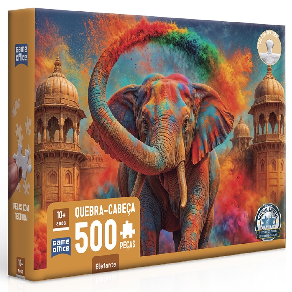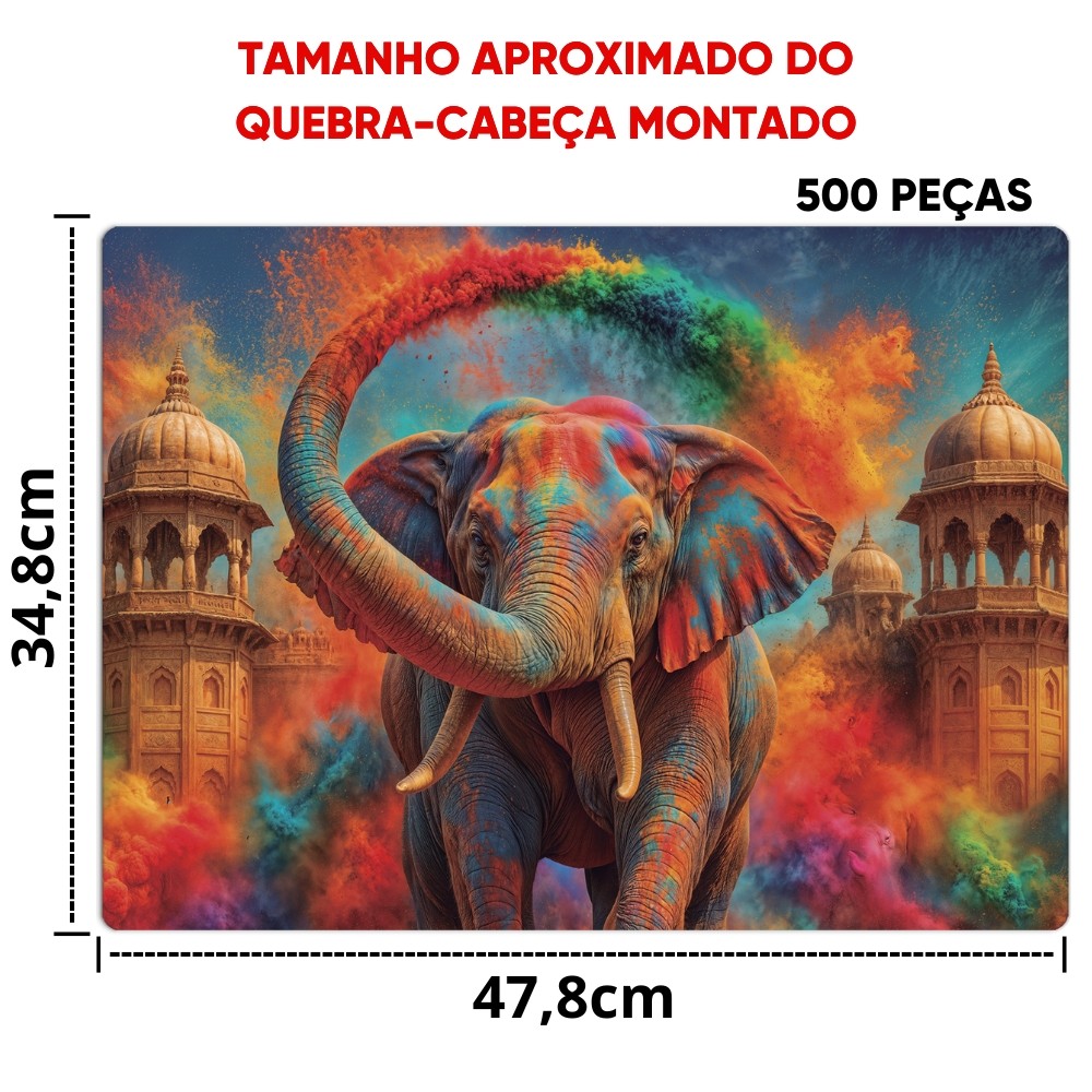 QUEBRA CABEÇA ELEFANTE 500 PEÇAS TOYSTER PUZZLE COLORIDO MONUMENTO TROMBA FORÇA ANIMAL QUADRO IA