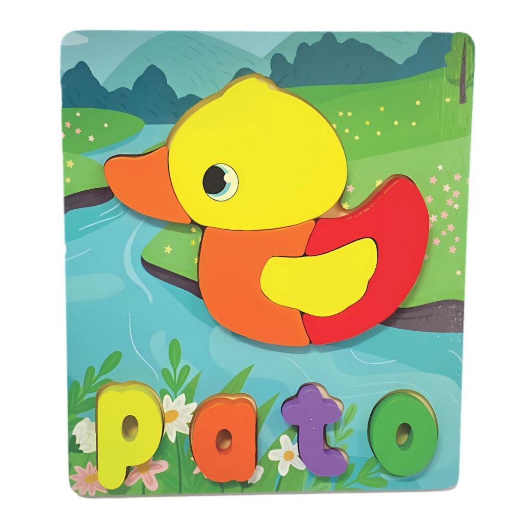 Quebra Cabeça Figura e Palavra Madeira Educativo Encaixe Divertido Letras Animais Palavra Montessori
