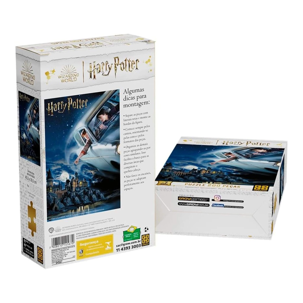 Nesta íncrível imagem de quebra-cabeça com 200 peças, você que é fã do Harry potter pode ver Rony e Harry sobrevoando a escola de Hogwarts, com o carro voador de Arthur. A montagem de um quebra-cabeça por passatempo ou por hobby traz momentos de alegria a cada peça montada. A montagem de um quebra-cabeça por passatempo ou por hobby traz momentos de alegria a cada peça montada. - Quantidade de peças: 200 - Tamanho aproximado do quebra-cabeça montado: 45,3 x 30,5 cm - Idade: a partir de 7 anos - Certificação Inmetro: CE-BRI/ICEPEX-N01264-25 - Tamanho da Imagem: 45,3X 30,5 cm Características: - Marca:GROW - Modelo:04567 *Imagens Meramente Ilustrativas* Conteúdo da Embalagem: - 01x quebra-cabeça com 200 peças quebra cabeça - quebra cabeças - quebra cabeça harry potter - harry potter - quebra cabeça 200 peças