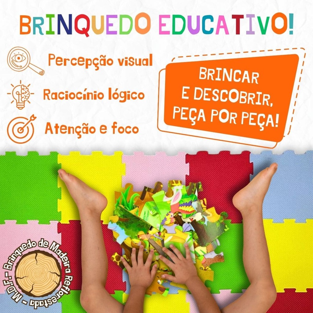 Surpreenda os pequenos com este quebra-cabeça de MDF de altíssima qualidade, feito com madeira de reflorestamento, ideal para quem valoriza um brinquedo durável e sustentável! Com 30 peças grandes e seguras, sem risco de engasgo, é perfeito para crianças explorarem com tranquilidade. As duas opções de temas, Floresta e Dinossauros, são um verdadeiro convite à imaginação: na Floresta, os pequenos vão se encantar com animais fofos e divertidos, enquanto no mundo dos Dinossauros, a aventura pré-histórica está garantida com criaturas fascinantes e coloridas. Além de ser um brinquedo superdivertido e visualmente chamativo, este quebra-cabeça é uma ferramenta poderosa para o desenvolvimento das crianças, estimulando o raciocínio lógico, a percepção visual e a concentração. Ele também é uma ótima maneira de manter os pequenos longe das telas, oferecendo uma experiência de aprendizado ativa e criativa. Um presente perfeito para qualquer ocasião, que vai encantar, educar e proporcionar horas de diversão saudável e educativa! FICHA TÉCNICA QUEBRA-CABEÇA 30 PEÇAS: - Idade: A partir de 4 anos - Categoria: Quebra Cabeças - Material: Papel Cartão e Madeira (MDF) - Certificação INMETRO: 003810/2019 | OCP 0046 - Dimensões Montado ( L x C ): 43,5 x 28,5 cm ITENS INCLUSOS: 30 peças de quebra-cabeça