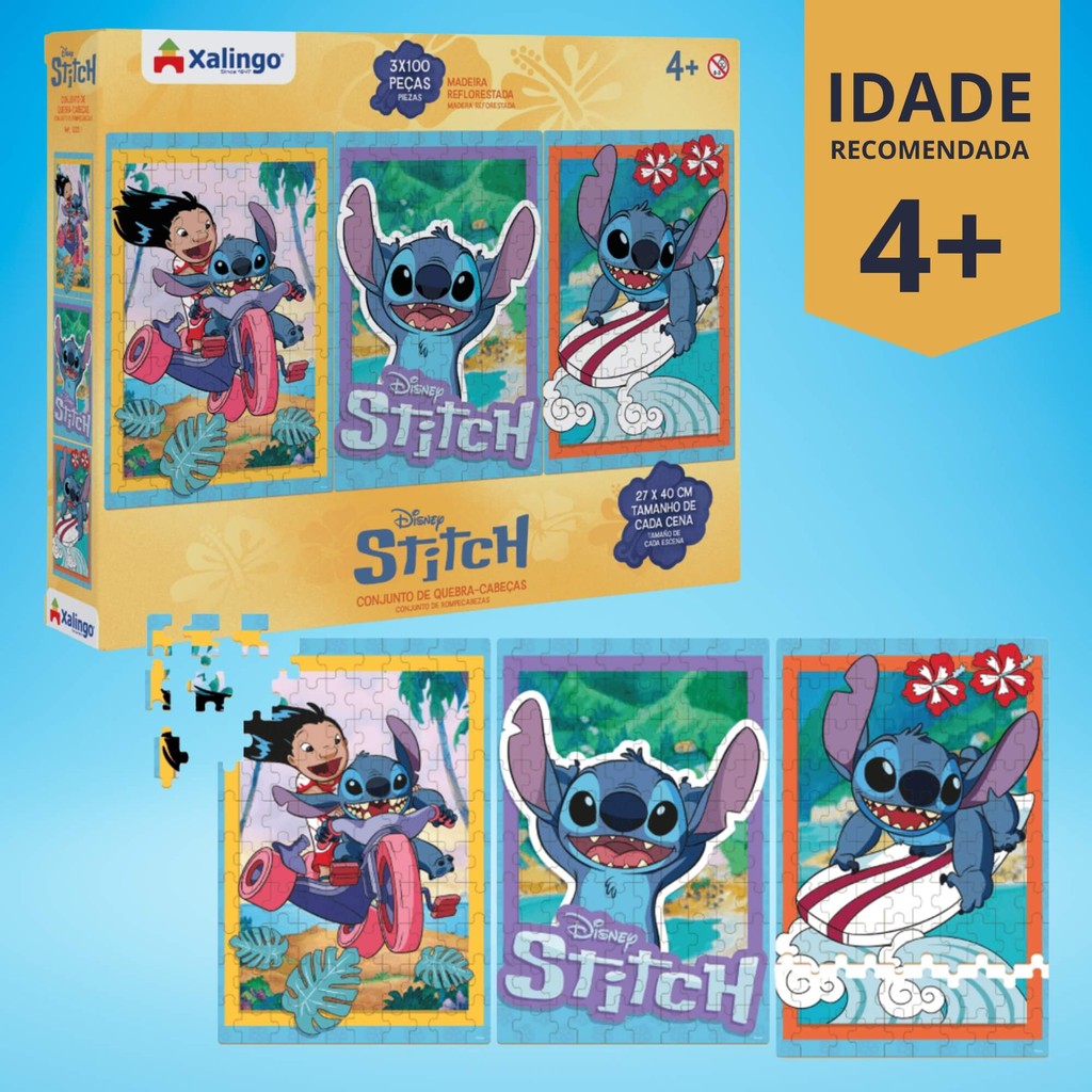 Quebra-Cabeça Infantil Stitch - 3 Cenas 300 Peças Xalingo - 12221 em Oferta na Shopee Quebra-Cabeça Infantil Stitch - 3 Cenas 300 Peças Xalingo - 12221 em Oferta na Shopee