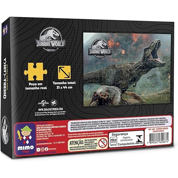 Quebra-Cabeça Jurassic World Fúria do T-Rex 200 Peças - Mimo Dê vida aos dinossauros em sua casa com este incrível quebra-cabeça da marca Mimo. O Quebra-Cabeça Jurassic World Fúria do T-Rex 200 Peças traz toda a emoção e aventura do mundo jurássico diretamente para a sua sala de estar. Com 200 peças, cada momento do encaixe é uma descoberta fascinante, permitindo que você monte uma cena empolgante com o temível T-Rex em ação. Idade recomendada: A partir de 7 anos. Selo Inmetro: 008653/2022. Diferenciais: Produto oficial e certificado pelo INMETRO, garantindo qualidade e segurança. Design exclusivo da marca Jurassic World, ideal para fãs de dinossauros. Conteúdo da embalagem: 200 peças que proporcionam diversão e desafio na medida certa. Mais sobre o Produto: Estimula a coordenação motora, concentração e raciocínio lógico. Ideal para todas as idades, proporcionando momentos de diversão em família ou sozinho. Possui acabamento de alta qualidade que garante durabilidade às peças. Dicas de Uso: Separe as peças por cores e formas para facilitar a montagem. Comece pelas bordas e vá preenchendo o centro aos poucos. Reserve um espaço adequado para montagem, longe de locais com vento ou riscos de quedas acidentais. Ficha Técnica: Marca: Mimo; Nome do produto: Quebra-Cabeça Jurassic World Fúria do T-Rex 200 Peças; Idade recomendada: A partir de 7 anos; Selo Inmetro: 008653/2022; Inclui: 200 peças.