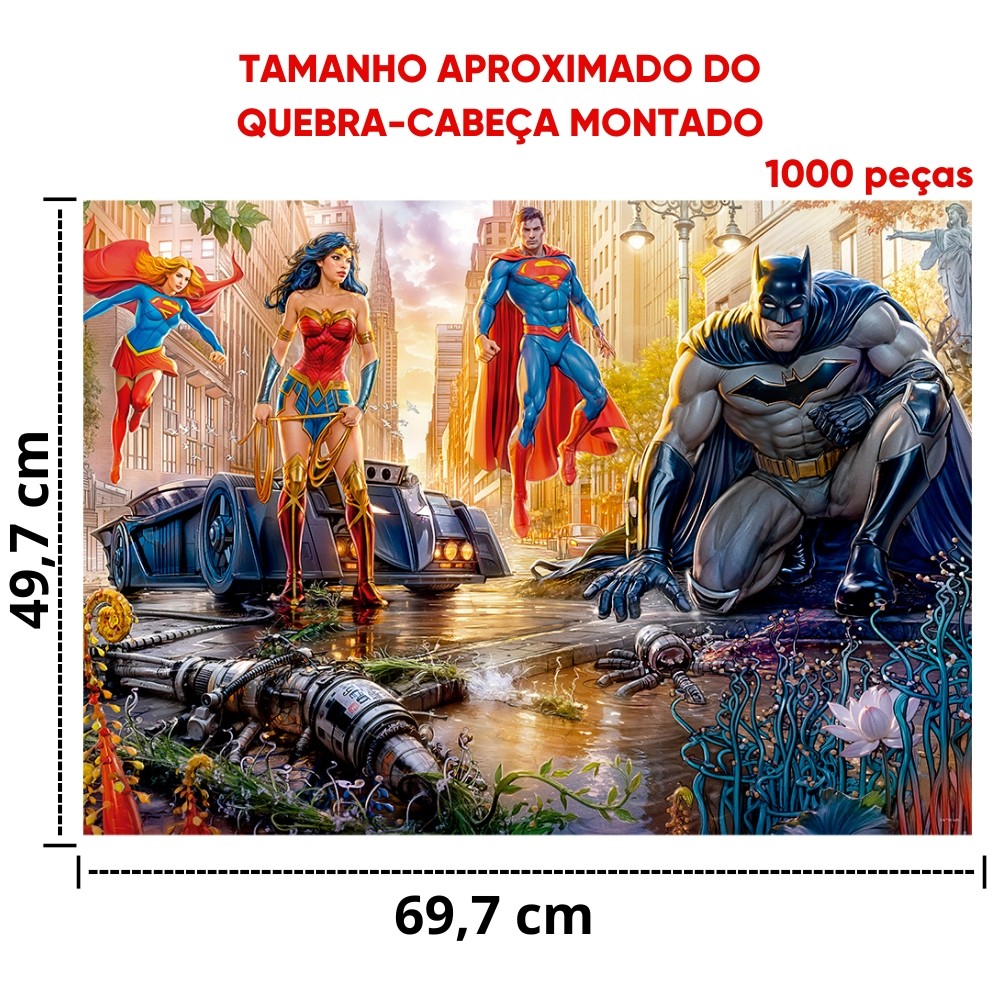 QUEBRA CABEÇA LIGA DA JUSTIÇA 1000 PEÇAS GROW PUZZLE DC HERÓIS SUPER HOMEM MULHER BATMAN MARAVILHA