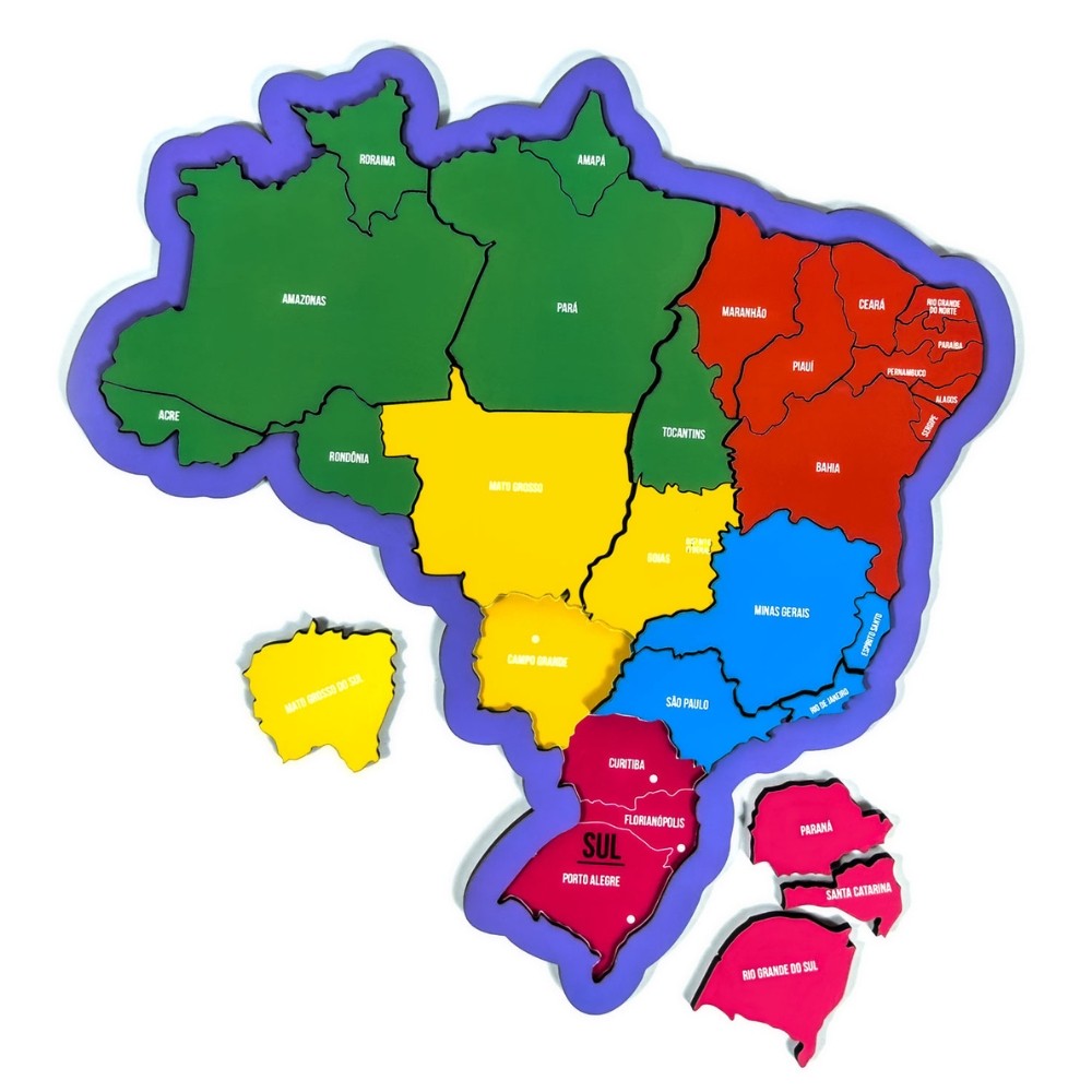QUEBRA CABEÇA MAPA DO BRASIL MADEIRA BABEBI JOGO EDUCATIVO LÓGICO GEOGRAFIA BRINQUEDO ESTADOS NOMES