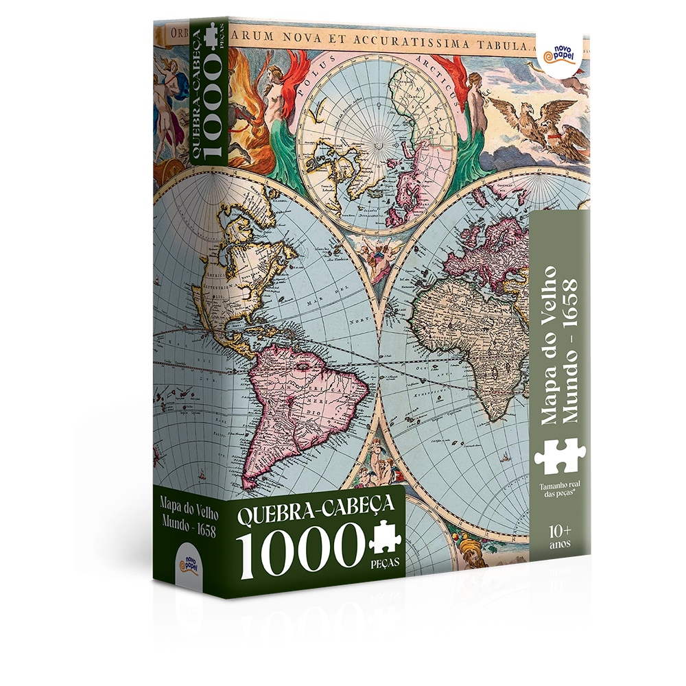 Quebra Cabeça Mapa do Velho Mundo, 1000 Peças. Feito em papel cartão. resistente, fácil usar e guardar. Tamanho Montado: 62 x 44 centímetros.