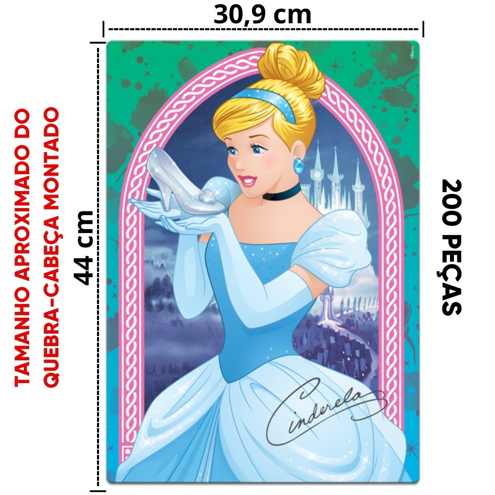 QUEBRA CABEÇA METALIZADO PRINCESA CINDERELA DISNEY 200 PEÇAS TOYSTER PUZZLE FILMES CRIANÇAS MENINAS
