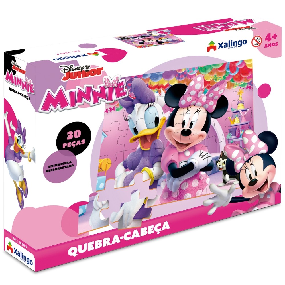 QUEBRA CABEÇA MINNIE 30 PEÇAS MADEIRA REFLORESTADA XALINGO DISNEY PUZZLE JOGO MONTAR BRINCAR MENINAS