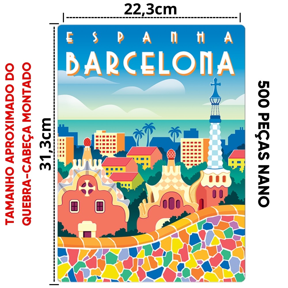 QUEBRA CABEÇA NANO ESPANHA BARCELONA POSTAIS DO MUNDO 500 PEÇAS PEQUENA TOYSTER PUZZLE PAISAGEM OBRA