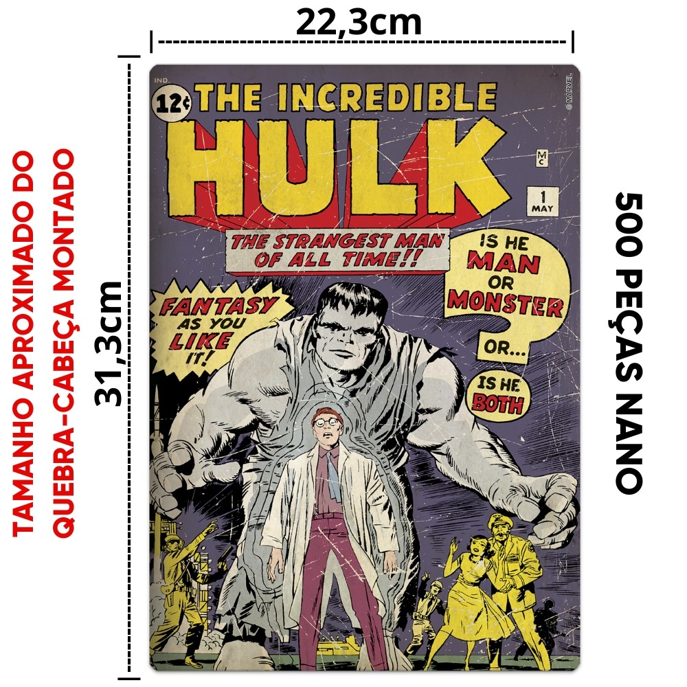 QUEBRA CABEÇA NANO HULK 500 PEÇAS PEQUENAS TOYSTER MAN MONSTER FILME SUPER HERÓI MARVEL COMICS VERDE