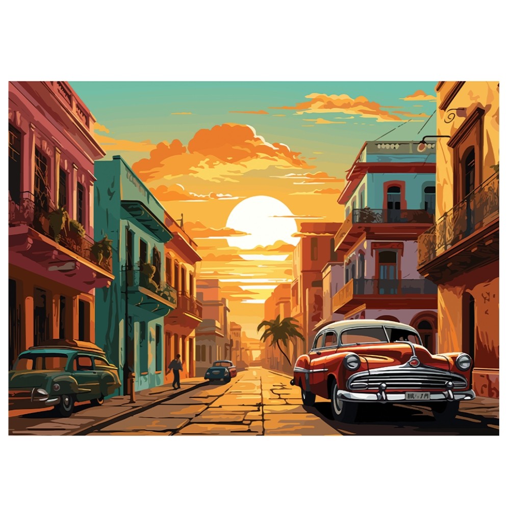 QUEBRA CABEÇA NAS RUAS DE HAVANA 500 PEÇAS GGB BRINQUEDOS PUZZLE PAISAGEM PONTOS TURÍSTICOS CARROS