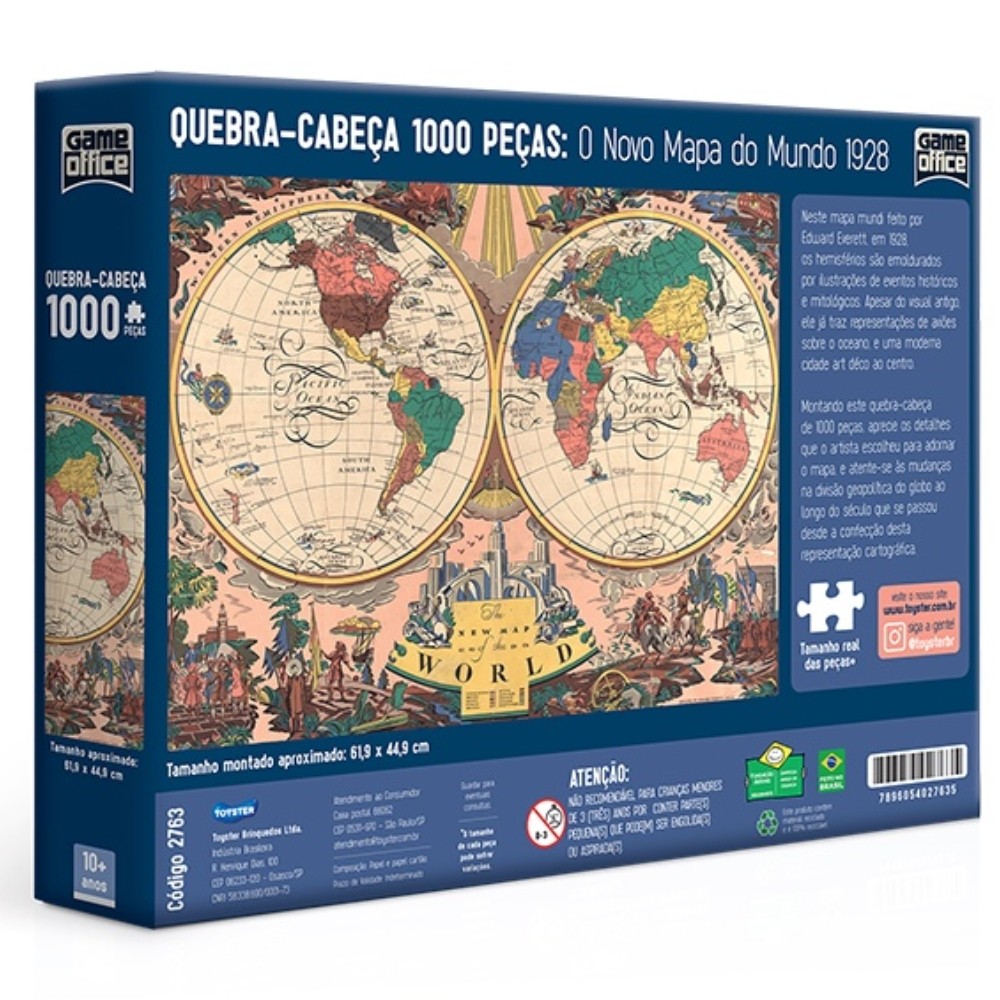 QUEBRA CABEÇA O NOVO MAPA DO MUNDO 1928 GAME OFFICE 1000 PEÇAS TOYSTER PUZZLE GEOGRAFIA PAÍS MUNDI