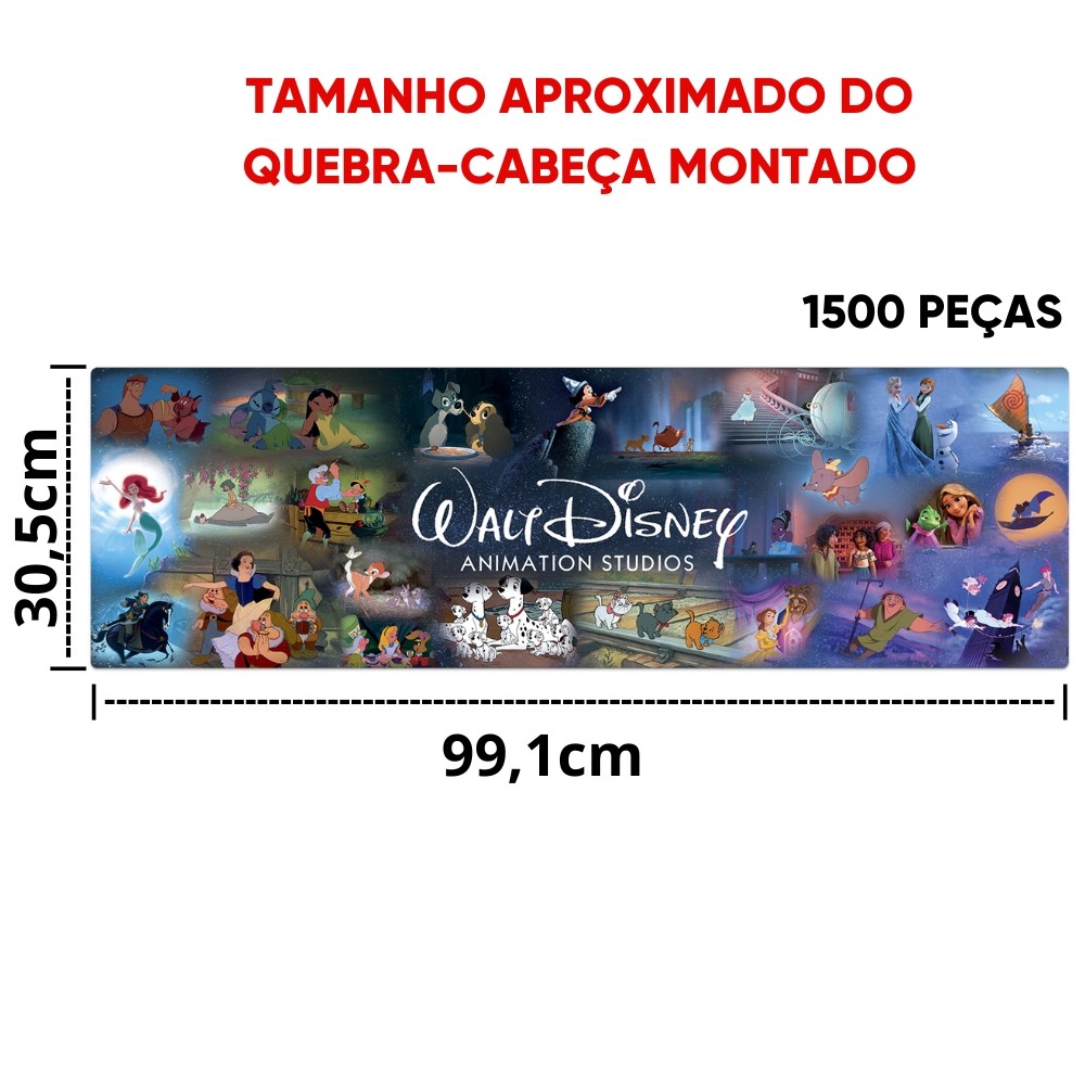 QUEBRA CABEÇA PANORÂMICO WALT DISNEY ANIMATION STUDIOS 1500 PEÇAS TOYSTER PUZZLE FILME STITCH MICKEY