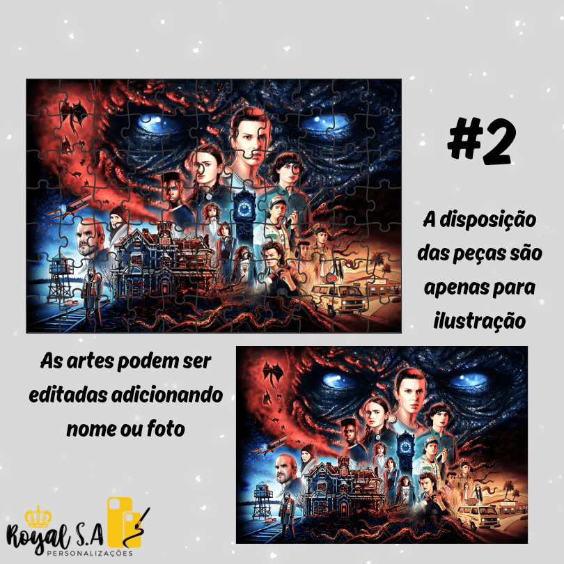 🧩✨ Quebra-Cabeça Stranger Things Personalizado – Mergulhe no Mundo Invertido com Estilo! Se você é fã de Stranger Things, prepare-se para uma viagem nostálgica direto para Hawkins! Com uma arte exclusiva inspirada nos personagens e cenários icônicos da série, esse quebra-cabeça é mais do que um desafio — é uma verdadeira imersão no universo retrô e misterioso que conquistou milhões de fãs. O mais legal? Você pode personalizar com seu nome, uma frase marcante da série ou até uma arte que você ama. É o toque final para deixar tudo com a sua cara! ✔ Impressão em alta definição com cores intensas e detalhes incríveis. ✔ Feito em MDF resistente, com encaixe suave e duradouro. ✔ Tamanho perfeito para decorar depois de montado ou dar de presente. 🎁 Ideal para fãs da série, colecionadores ou para aquele amigo que ama tudo dos anos 80! 🛒 Garanta já o seu quebra-cabeça personalizado de Stranger Things e entre nessa aventura peça por peça!