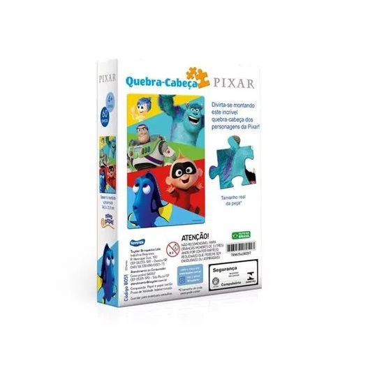 Quebra Cabeça Disney Pixar 60 Peças Toyster - 8051 Divirta-se e desenvolva o raciocínio montando este incrível quebra-cabeça dos personagens da Pixar. São 60 peças para encaixar e formar uma divertida imagem, com tamanho montado de aproximadamente 34,5 cm de altura e 22,5 cm de largura. Recomendado para crianças a partir de 4 anos. Certificado Inmetro: Registro 000 520/2022 OCP 0006. Imagens meramente ilustrativas.