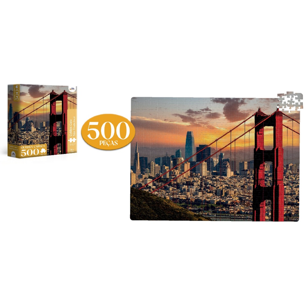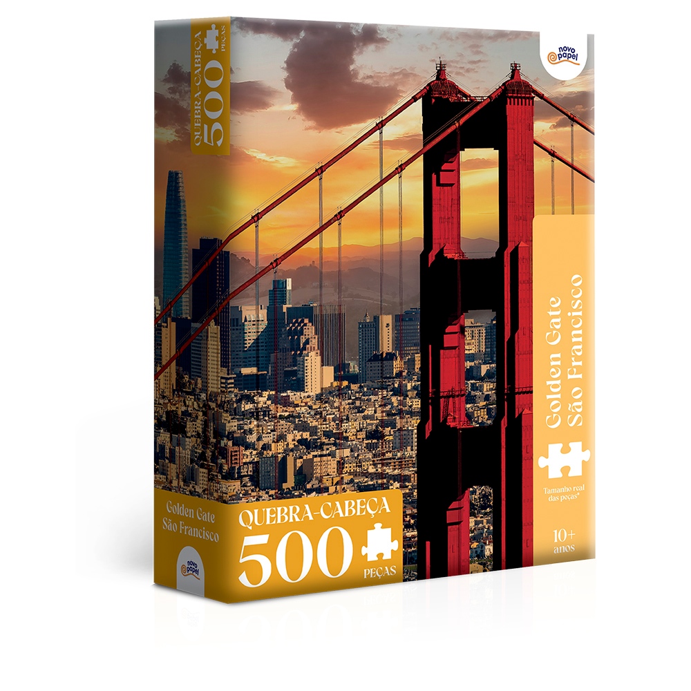 Quebra Cabeça Ponte Golden Gate São Francisco, 500 Peça. Feito em Papel Cartão, fácil de usar e guardar, resistente. Dimensões Montado: 47,8 x 34,8 cm.