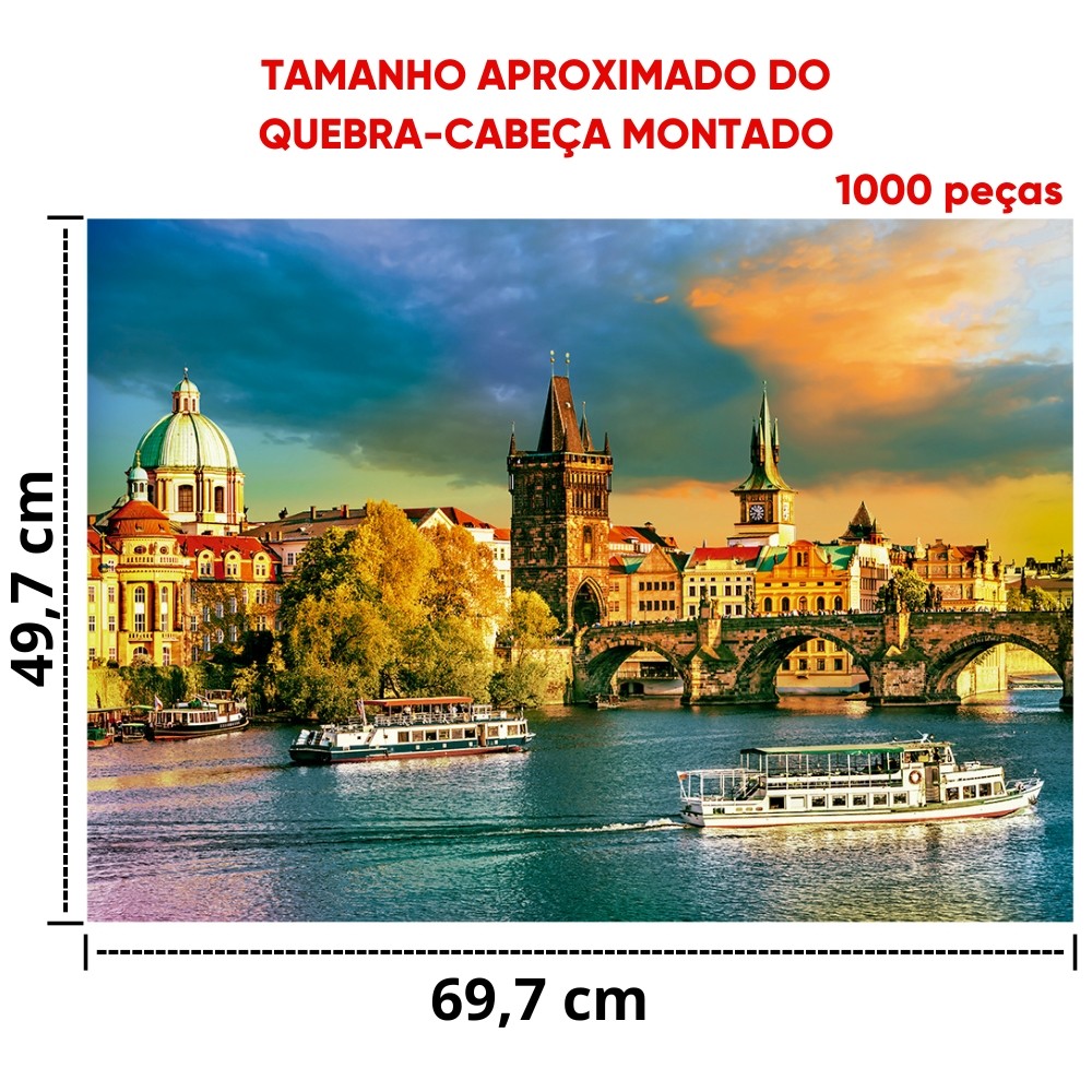 QUEBRA CABEÇA PRAGA 1000 PEÇAS GROW PUZZLE PAISAGEM PONTO TURÍSTICO QUADRO RIO BARCO REPÚBLICA CHECA