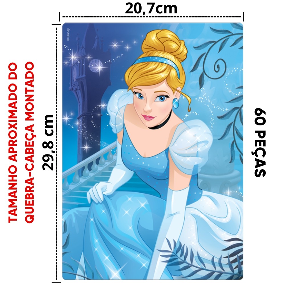 QUEBRA CABEÇA PRINCESA CINDERELA DISNEY 60 PEÇAS JAK TOYSTER PUZZLE FILME DESENHO CRIANÇA MENINA
