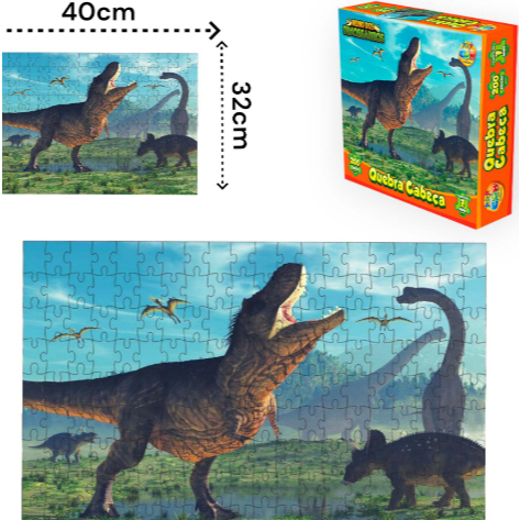 QUEBRA CABEÇA COM 200 PEÇAS , TEMA: DINOSSAURO APROVEITE A SUPER OFERTA , TEMOS A PRONTA ENTREGA . FAZEMOS OS ENVIOS RÁPIDO E BEM EMBALADO . TAMANHO REAL DO QUEBRA CABEÇA 42X30CM TAMANHO REAL DAS PEÇAS 3X4,6CM TEMOS MAIS MODELOS DE QUEBRA CABEÇA , CONSULTE NOSSOS ANÚNCIOS . QUALQUER DÚVIDA ESTAMOS A DISPOSIÇÃO , ESPERAMOS A SUA COMPRA