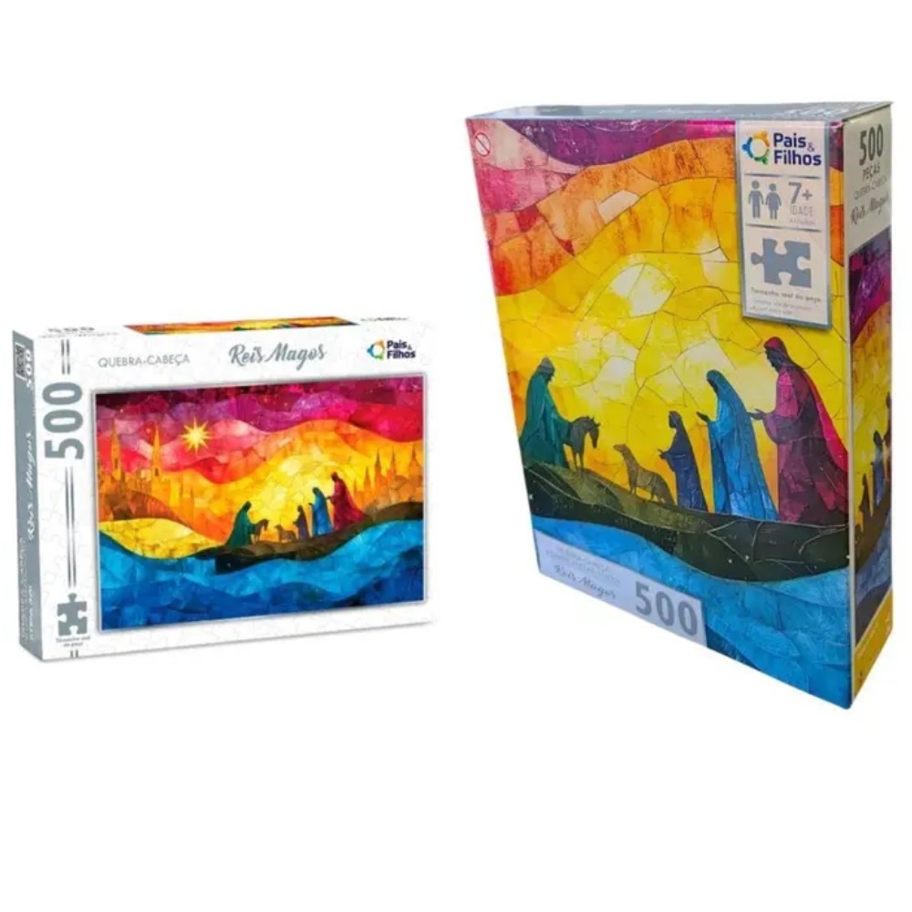 QUEBRA CABEÇA REIS MAGOS 500 PEÇAS PAIS E FILHOS PUZZLE NASCIMENTO JESUS CRISTO RELIGIÃO QUADRO DEUS