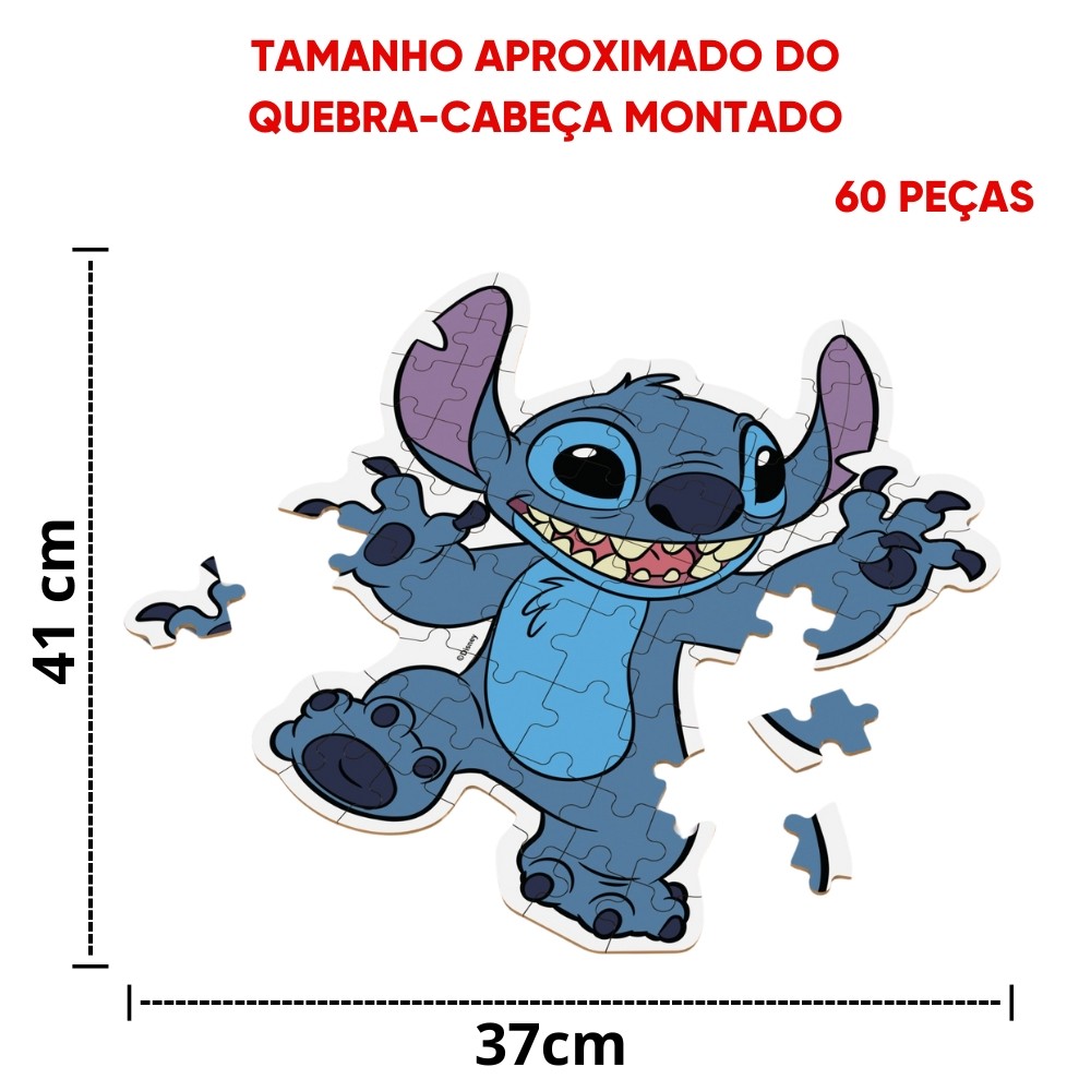 QUEBRA CABEÇA STITCH 60 PEÇAS MADEIRA REFLORESTADA XALINGO LILO DISNEY FILME PUZZLE AZUL BONECO CENA