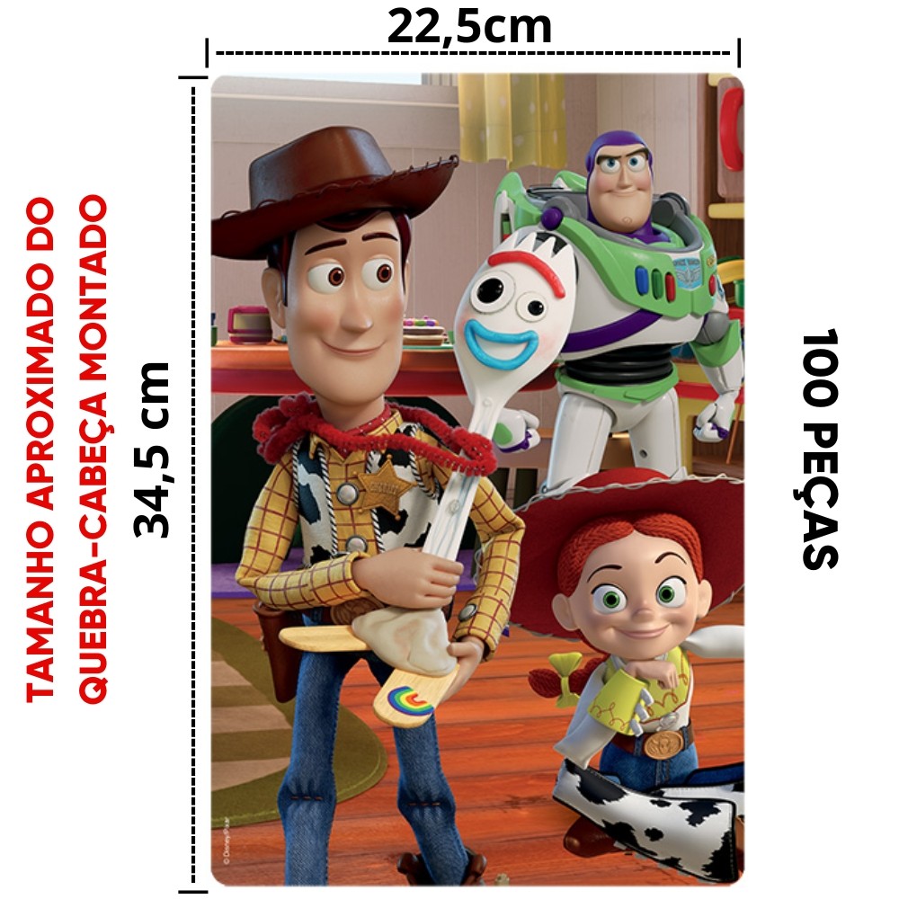 QUEBRA CABEÇA TOY STORY 4 DISNEY 100 PEÇAS TOYSTER BUZZ WOODY BETTY ANDY LOTSO FILME BRINQUEDO PIXAR