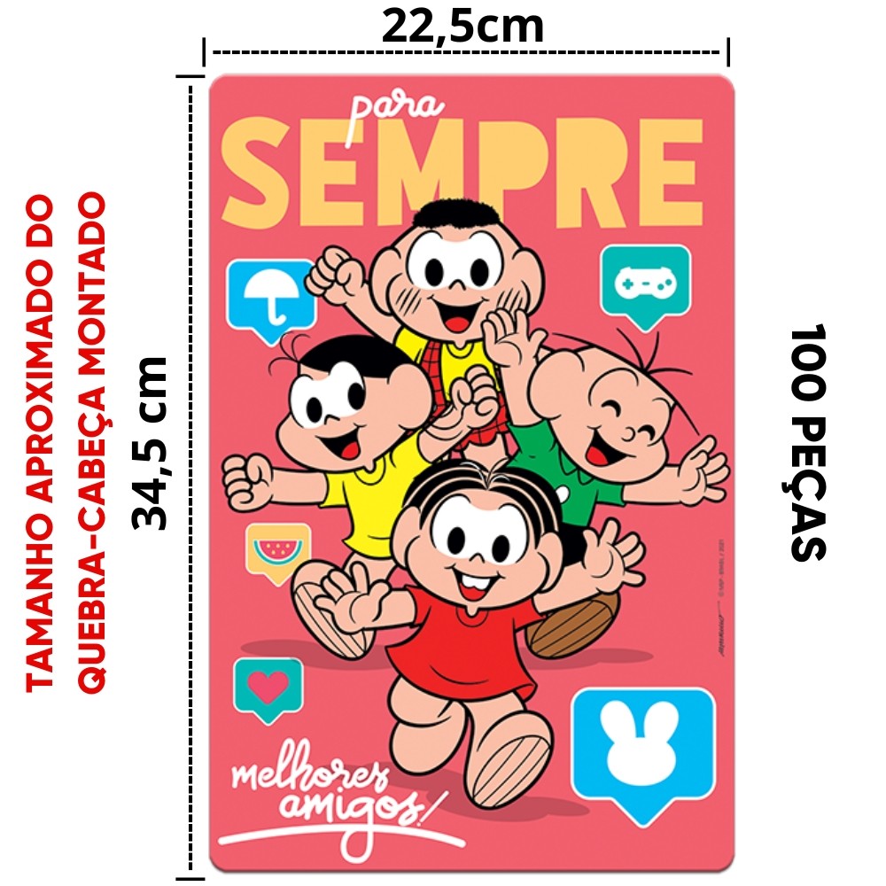 QUEBRA CABEÇA TURMA DA MÔNICA 100 PEÇAS PUZZLE TOYSTER DESENHO CRIANÇA MAGALI CEBOLINHA CASCÃO AMIGO