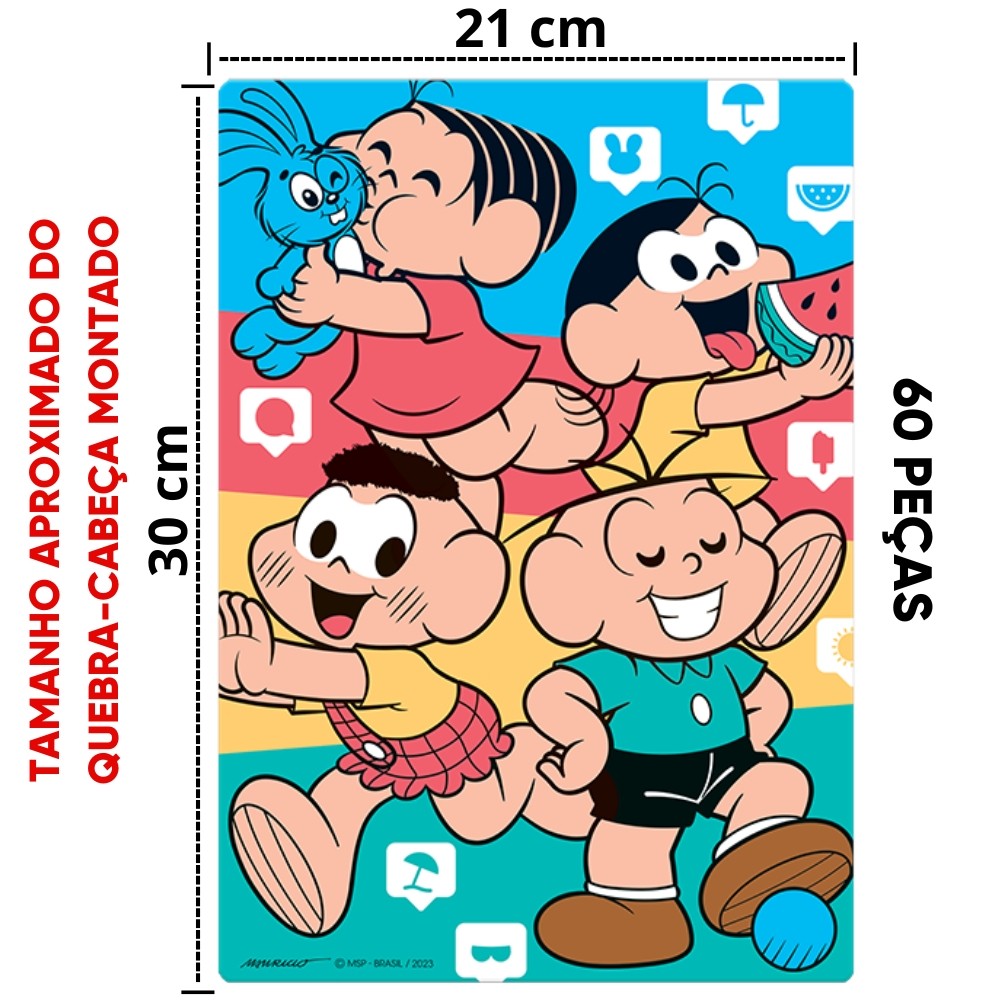 QUEBRA CABEÇA TURMA DA MÔNICA 60 PEÇAS TOYSTER PUZZLE CRIANÇA MAGALI CEBOLINHA CASCÃO COELHO SANSÃO