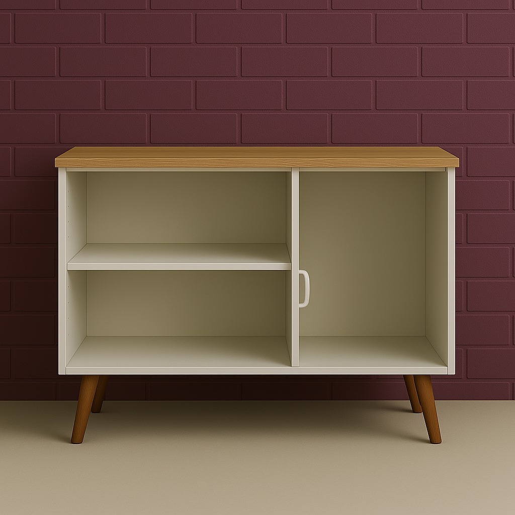 O Buffet é a combinação perfeita de charme, sofisticação, modernidade e um toque retrô. Além disso, ajuda a organizar o seu ambiente. Possui 2 prateleiras abertas e 1 compartimento com porta, que ajudam a acomodar seus aparelhos eletrônicos e objetos decorativos. Dimensões do produto montado: Altura: 77,5 cm Largura: 90,0 cm Comprimento: 33 cm Peso suportado: Tampo: até 15 kg distribuídos Compartimentos: até 6 kg distribuídos em cada Peso total suportado: 20 kg bem distribuídos. Observações: - Pés em Polipropileno - 3 Portas - Os objetos que ambientam as fotos não acompanham o produto; - O produto será entregue desmontado; - Mantenha as informações de contato e endereço de entrega atualizadas para entrarmos em contato, caso seja necessário; - Fique atento, nossas cores podem sofrer alterações dependendo do seu monitor; - ANTES DE MONTAR O SEU PRODUTO, certifique-se que todas as instruções dispostas no manual, bem como todas as ferragens descritas, estejam presentes dentro da embalagem. Verifique se há alguma peça avariada, caso esteja, prestaremos a devida assistência dentro do prazo da garantia. - Imagens meramente ilustrativas.