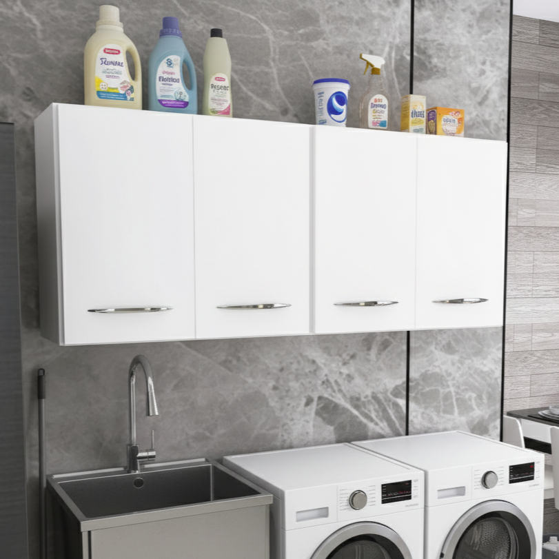 QUEIMA DE ESTOQUE - Armário Suspenso Funcional para Lavanderia com 4 Portas