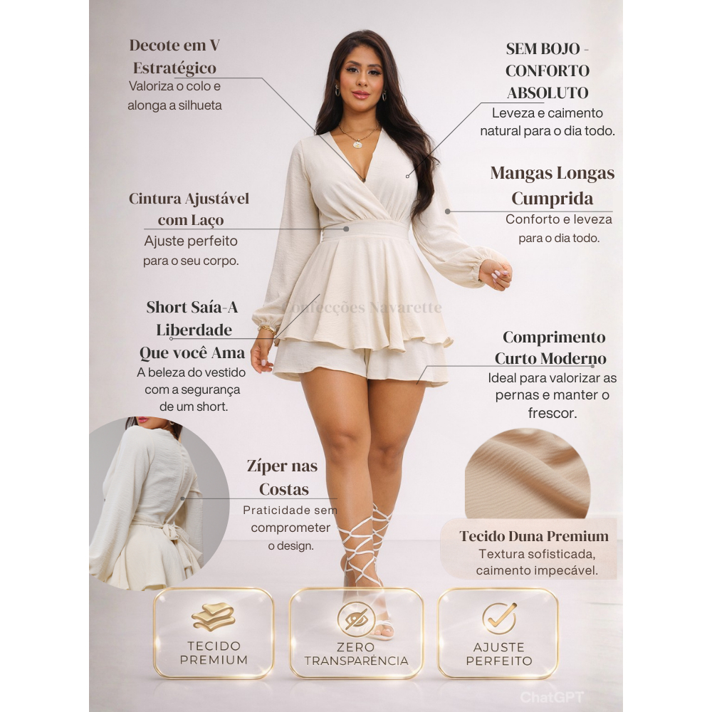 🚀 MACAQUINHO "MANGA LONGA LUXO" — QUEIMA DE ESTOQUE — ENVIO IMEDIATO 🚀 A elegância da manga longa com a liberdade do short-saia. O Modelo é a peça perfeita para quem busca um visual sofisticado e marcante. Com tecido Duna Premium, ele oferece um caimento fluido que não amassa, ideal para eventos, jantares e ocasiões onde você quer ser o centro das atenções. ✨ POR QUE VOCÊ VAI AMAR? • Manga Longa Fluida: Traz sofisticação e um toque de mistério, valorizando os braços com leveza. • Visual 2 em 1: Toda a beleza de um vestido curto com a segurança de um short interno. • Tecido Panama Premium e Duna Premium: Trama nobre que não amassa, não encolhe e mantém a cor vibrante. • Cintura Definida: Modelagem que abraça as curvas e valoriza a silhueta de forma elegante. 📏 GUIA DE TAMANHO ÚNICO DISPONÍVEL: M (40) Atenção: Estamos liquidando as últimas peças apenas no tamanho M. Para um ajuste perfeito, siga o método: ❌ NÃO meça seu corpo. ✅ SIM: Pegue um macaquinho ou vestido plano (sem elastano) que você já ama, coloque-o sobre uma mesa e meça a FRENTE com uma régua. Multiplique por 2 para comparar: TAMANHO M (Veste 40) • Busto: 96 cm (circunferência total) • Manga: 60 cm • Cintura: 80 cm (circunferência total) • Quadril: 150 cm (circunferência total) • Comprimento: 79 cm ⚠️ DICA DIAMANTE: O tecido possui baixo elastano, por isso a medida da CINTURA é a mais importante para o seu conforto. 📋 FICHA TÉCNICA: • Diferencial: Manga longa elegante com punho delicado. • Tecido: Crepe Duna Premium (Alta qualidade e frescor). • Forro: Sim, possui forro interno para Zero Transparência. • Praticidade: Zíper reforçado para facilitar o vestir. 📦 DÚVIDAS RÁPIDAS: O envio é rápido? Sim! Estoque real. Pedidos aprovados até as 12h saem no mesmo dia. As fotos são reais? Sim, 100% reais. Você receberá exatamente o produto que está vendo. Vai ter reposição? Não. Esta é uma Edição Limitada de queima de estoque. 🔥 ÚLTIMAS UNIDADES NO TAMANHO M! Não perca a chance de ter essa peça premium por um preço de oportunidade. Clique em "Compre Agora" e garanta o seu!
