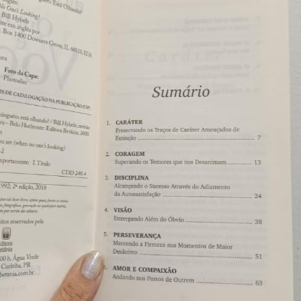Descrição Em Quem é Você Quando Ninguém Está Olhando?, o pastor e escritor Bill Hybels desafia os leitores a refletirem sobre sua vida interior e a coerência entre fé e prática. O livro mostra que a verdadeira espiritualidade não se resume às aparências, mas se manifesta naquilo que fazemos quando ninguém está nos observando. Com exemplos práticos e linguagem acessível, Hybels apresenta virtudes como coragem, disciplina, visão e perseverança, incentivando os cristãos a cultivarem um caráter sólido e íntegro. É uma leitura indicada para quem deseja aprofundar sua vida espiritual e viver de forma autêntica diante de Deus e das pessoas. Ficha técnica Título: Quem é Você Quando Ninguém Está Olhando? Autor: Bill Hybels Editora: Betânia Ano de publicação: 2018 EAN/ISBN: 9788535800272 Idioma: Português Formato: Brochura (capa comum) Dimensões: 21 cm x 13,5 cm x 1 cm Peso: 140 g Número de páginas: 128 Categoria: Vida cristã, espiritualidade, caráter cristão Indicação etária: Jovens e adultos Recursos adicionais: Reflexões bíblicas, exemplos práticos, aplicação para vida cristã Palavras-chave quem é você quando ninguém está olhando, Bill Hybels, Editora Betânia, integridade cristã, caráter, espiritualidade