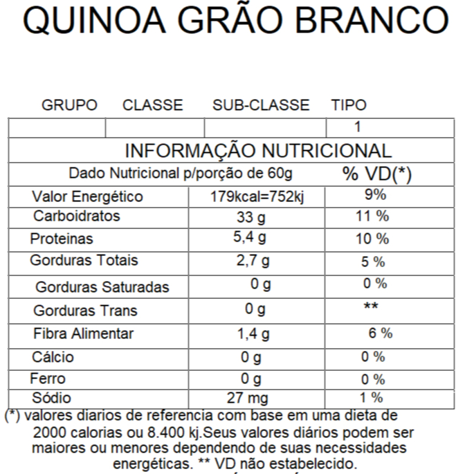 Quinua Branca em Grãos 1kg com Laudo de Qualidade 500Gr