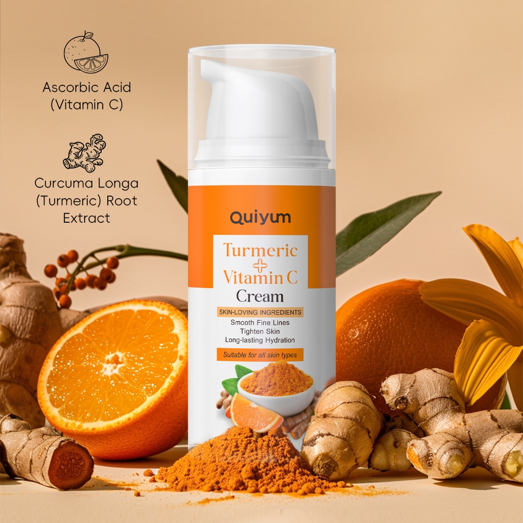 QUIYUM Creme De Vitamina C De Cúrcuma Para Apertar A Pele , Manchas Redutoras , Calmante , Hidratação De Longa Duração , Brilho Radiante 30g