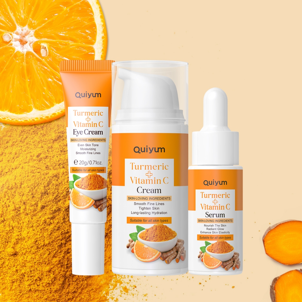 QUIYUM Cúrcuma Vitamina C Conjunto De Tratamento Da Pele Até O Tom Elasticidade Ehance Antioxidação 3PCS/5PCS/7PCS
