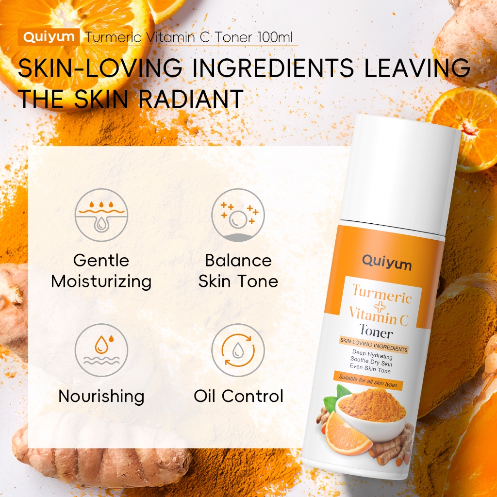 QUIYUM Cúrcuma Vitamina C Toner Antioxidação Hidratação Profunda Mesmo Tom De Pele Acalma Seca 100ml