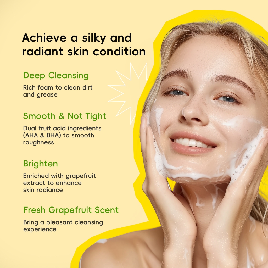 QUIYUM YUZU AHA Limpador Facial Limpeza Profunda Suave Textura Áspera Apertar Poros 100g