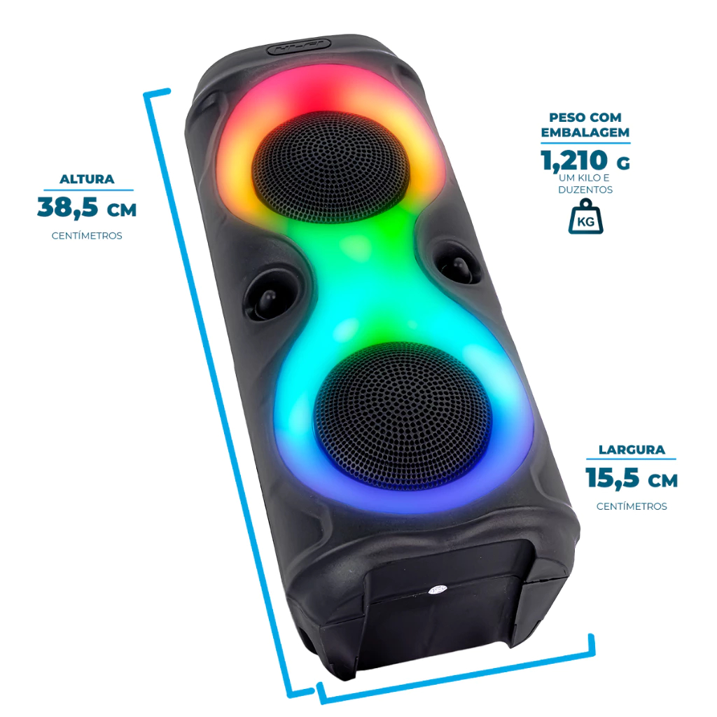 Caixa de Som Multimídia Xtrad 50W RGB Bluetooth A Caixa de Som Multimídia Xtrad 50W RGB é a opção ideal para quem busca um áudio imersivo aliado a um design único. Com alto-falantes com design diferenciado e um contorno LED RGB que proporciona um visual envolvente, esta versão da Xtrad aprimora a estética e a qualidade sonora de suas experiências de entretenimento. Características: Conexões Versáteis: Conecte-se facilmente via Blueconnect (alcance de até 10 metros sem barreiras), aproveite o Rádio FM, utilize um Pendrive USB ou desfrute da funcionalidade TWS. Potência e Qualidade Sonora: Aproveite de uma potência de 50W com uma ampla resposta de frequência, indo de 100 a 18.000Hz. Bateria Interna Eficiente: Equipada com uma bateria de 1.500mAh, a caixa garante uma recarga rápida de aproximadamente 3 horas e autonomia de até 4 horas, variando conforme o volume e a iluminação utilizados. Design Inovador: Com alto-falantes exclusivos e um contorno LED RGB, a Xtrad 50W oferece uma fusão perfeita entre estilo e desempenho. Iluminação RGB Personalizável: O contorno LED RGB proporciona um visual envolvente, com a possibilidade de personalizar as cores de acordo com sua preferência. Além disso, a iluminação pode ser facilmente desativada para preservar a bateria quando necessário. Eleve Suas Experiências Auditivas: Com alto-falantes exclusivos e um contorno LED RGB, a Caixa de Som Multimídia Xtrad 50W RGB proporciona uma estética marcante e uma qualidade sonora excepcional. Escolha a Xtrad e experimente um áudio de alta qualidade em conjunto com um design inovador. ACOMPANHA: 01 Caixa de Som 01 Cabo USB Para recarga 01 Manual de Instruções