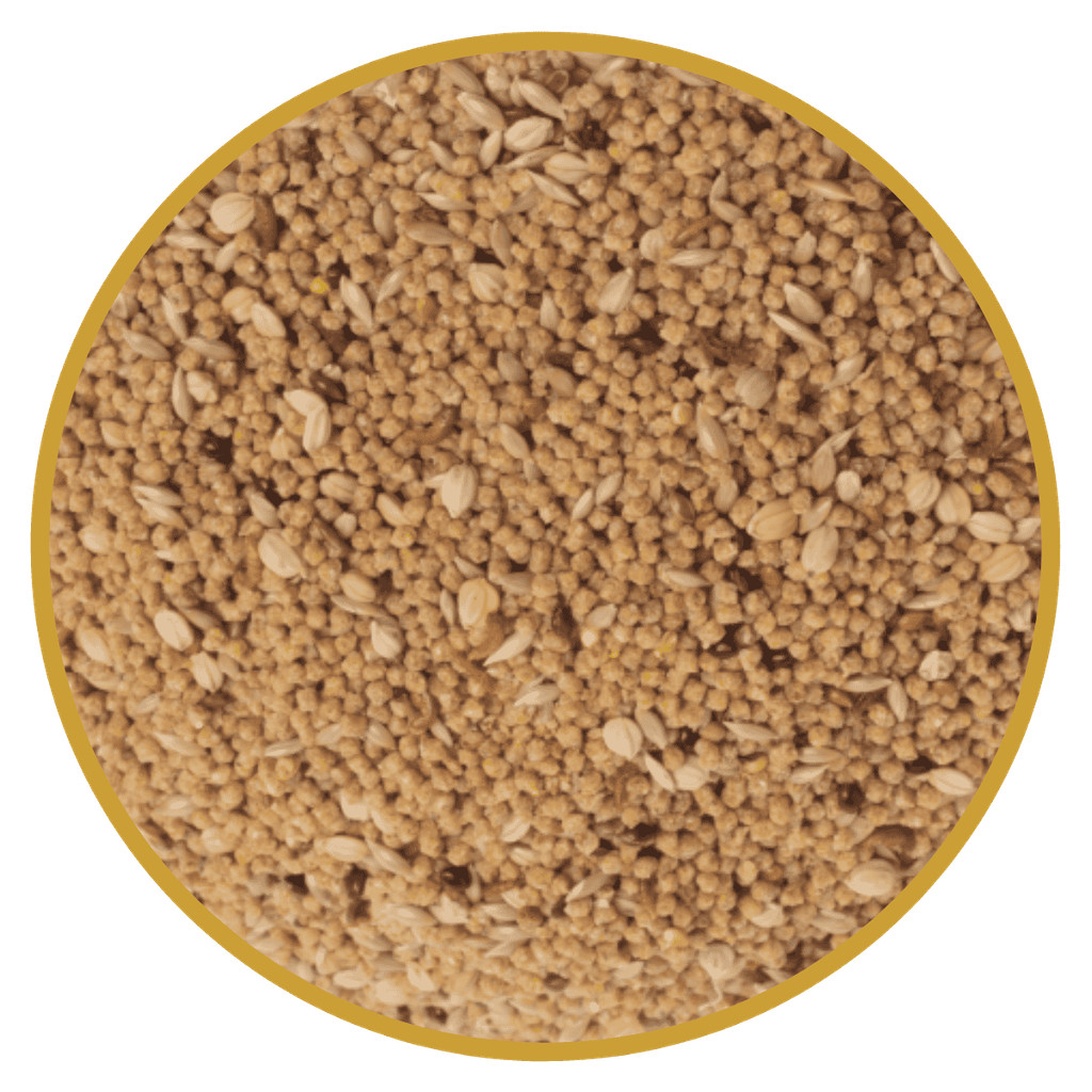 A Nutribiótica Super Premium A Nutribiótica Super Premium Bicudo & Curió é um alimento completo e balanceado para Bicudos, Curiós e passeriformes assemelhados nas fases de manutenção e reprodução. Embalagens plásticas com barreira luz e oxigênio de 300g e 5kg. Espécies: Curió e Bicudo Azulão Composição Básica: Milho Moído*, Quirera de Arroz, Farelo de Soja**, Glúten de Milho 60%*, Grão de Linhaça (3,6%), Grão de Cártamo, Grão de Arroz Pacholinha (8%), Alpiste (10%), Grão de Painço Preto (3%), Grão de Painço Vermelho (2%), Gammarus Desidratado (0,5%), Ovo em pó desidratado, Biomassa de Microalgas (Schizochytrium sp.), Biomassa de Microalgas Desidratada (Spirulina platensis), Mel de Abelha, Óleo de Girassol Bruto, Cloreto de Sódio, Cloreto de Potássio, Calcário Calcítico, Fosfato Bicálcico, Ácido Fólico, D-Pantotenato de Cálcio, Biotina, Vitamina C, Niacina, Cloreto de Colina, Vitamina A, Vitamina B1 (Tiamina), Vitamina B2 (Riboflavina), Vitamina B6 (Piridoxina), Vitamina B12, Vitamina D3, Vitamina E, Vitamina K3 (Menadiona), Inositol, Ferro Quelato, Cobre Quelato, Iodato de Cálcio, Sulfato de Cobalto, Sulfato de Manganês, Manganês Quelatado, Zinco Quelatado, Selênio Quelatado, Picolinato de Cromo, Prebióticos (Frutooligossacarídeo-FOS e Mananoligossacarídeo-MOS), Extrato de leveduras (doador de nucleotídeos e peptídeos), Parede Celular de Leveduras, Bentonita, Zeólita (1,5%), Aditivos Antioxidantes (BHT e BHA), Fitase, Xilanase, Amilase, Protease, Probióticos (Bacillus subtilis, Bacillus licheniformis, Bifidobacterium bifidum, Enterococcus faecium, Lactobacillus acidophilus, Lactobacillus plantarum, Saccharomyces cerevisiae), Óleos Essenciais (Orégano, Canela), Alho em pó desidratado (0,1%), Aroma de Melaço, Aroma de Mel, DL Metionina, L-Lisina, Ácido Propiônico, Sorbato de Potássio, Betaglucanos, Glucomananos, Alcachofra (Cynara cardunculus subsp. scolymus), Extrato de Cardo Mariano (Silybum marianum), Cloreto de Potássio, Bicarbonato de Sódio. Energia Bruta: 3.300 kcal/kg Espécies doadoras de genes: *Streptomyces viridochromogenes, Bacillus thuringiensis. **Agrobacterium tumefaciens. Ingredientes fixos sem eventuais substitutivos. Níveis de Garantia: Umidade (Máx.) 100g/kg Proteína Bruta (Mín.) 160g/kg Extrato Etéreo (Mín.) 60g/kg Matéria Fibrosa (Máx.) 40g/kg Matéria mineral (Máx.) 40g/kg Cálcio (Máx.) 9.000mg/kg Cálcio (Mín.) 4.500mg/kg Fósforo (Mín.) 4.500mg/kg Ômega 3 (Mín.) 5.500mg/kg Ômega 6 (Mín.) 24g/kg DHA (Mín.) 400mg/kg Fitase 2000 FTU/kg Xilanase 16000 BXU/kg Amilase 5 U/kg Protease 1 U/kg MOS (Mín.) 1.140mg/kg FOS (Mín.) 1.000mg/kg Beta Glucanos (Mín.) 360mg/kg Glucomananos (Mín.) 660mg/kg Bacillus subtilis 9×10^7 UFC/kg Bacillus licheniformis 9×10^7 UFC/kg Bifidobacterium bifidum 4×10^6 UFC/kg Enterococcus faecium 4×10^6 UFC/kg Lactobacillus acidophilus 4×10^6 UFC/kg Lactobacillus plantarum 4×10^6 UFC/kg Saccharomyces cerevisiae 4×10^6 UFC/kg Inulina 3mg/kg Modo de uso: A Nutribiótica Super Premium A Nutribiótica Super Premium Bicudo & Curió é um alimento completo e balanceado para Bicudos, Curiós e passeriformes assemelhados nas fases de manutenção e reprodução. Enriquecimento por kg: Vitamina A (Mín.) 13.000UI, Vitamina D3 (Mín.) 1.300UI, Vitamina E (Mín.) 160UI, Vitamina C (Mín.) 650mg, Vitamina B1 (Mín.) 5,0mg, Vitamina B2 (Mín.) 8,6mg, Vitamina B6 (Mín.) 8,6mg, Vitamina B12 (Mín.) 32,0mcg, Vitamina K3 (Mín.) 3,2mg, Ácido Fólico (Mín.) 2,6mg, Ácido Pantotênico (Mín.) 43,0mg, Biotina (Mín.) 0,43mg, Niacina (Mín.) 75,0mg, Colina (Mín.) 540mg, Inositol (Mín.) 160mg, Cobre quelatado (Mín.) 35,0mg, Ferro quelatado (Mín.)900,0mg, Iodo (Mín.) 2,30mg, Manganês (Mín.) 60,0mg, Manganês quelatado (Mín.) 40,0mg, Butirato de Sódio 750mg, Selênio quelatado (Mín.) 0,72mg, Zinco quelatado (Mín.) 180mg, BHT (Mín.) 120mg, BHA (Mín.) 125mg, Cobalto (Mín.) 0,12mg, Cromo (Mín.) 0,30mg