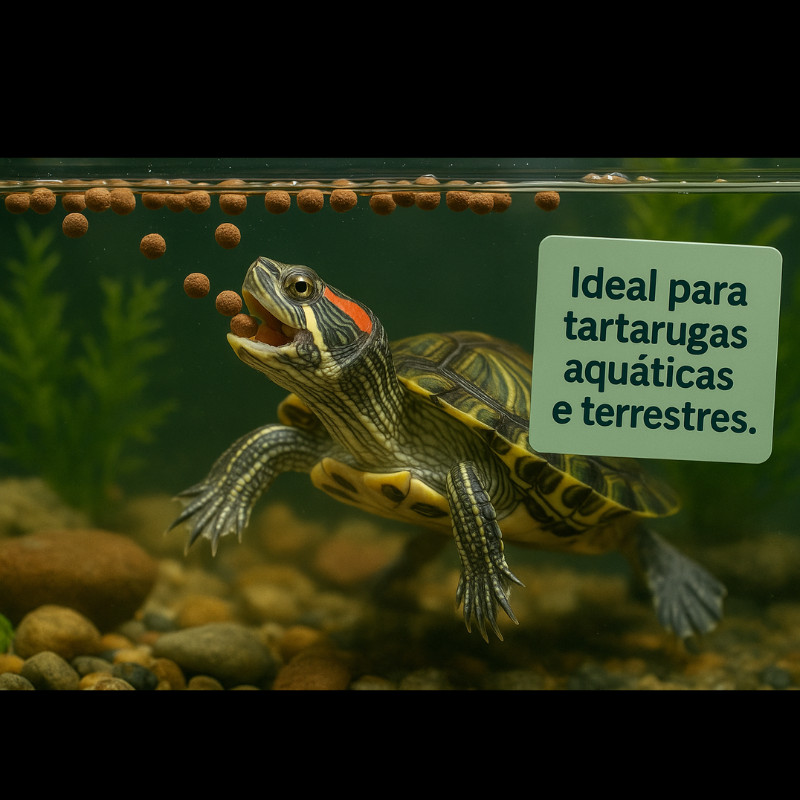 RAÇÃO PREMIUM PARA TARTARUGAS – JABUTI E TIGRE D'ÁGUA Descrição do Produto: Ração balanceada para tartarugas terrestres e aquáticas, ideal para uso diário. Fórmula rica em nutrientes essenciais que ajudam na digestão, no fortalecimento do casco e no crescimento saudável. Ideal para tartarugas jovens e adultas Rica em cálcio, proteínas e fibras naturais Flutuante – facilita a alimentação e evita sujeira Alta digestibilidade e qualidade nutricional Composição: Farinha de peixe, soja, milho, cálcio, vitaminas A, D3, E, entre outros ingredientes. Tamanhos disponíveis: 100g | 200g | 400g Recomendada para: - Jabuti - Tigre d’Água - Tartaruga de Ouvido Vermelho - Tartarugas aquáticas e semi-aquáticas Modo de Uso: Ofereça uma pequena quantidade 1 a 2 vezes ao dia Remova os restos após 30 minutos para evitar contaminação da água Para tartarugas terrestres, ofereça em um recipiente seco Mantenha sempre água limpa disponível Atenção: Não recomendado para tartarugas filhotes. Garantias e Informações Adicionais: Nota Fiscal: Enviamos com nota fiscal eletrônica (NF-e) Garantia: 7 dias grátis contra defeitos ou danos no transporte Envio: Rápido e bem embalado, postado em até 24h úteis Validade: 6 meses a partir da data de fabricação Armazenamento: Produto sempre armazenado em local seco e arejado Perguntas Frequentes (FAQ): 1. Essa ração serve para filhotes? Não. Essa ração é indicada apenas para tartarugas jovens e adultas. 2. A ração afunda ou flutua? Ela é flutuante, ideal para espécies aquáticas e semi-aquáticas. 3. Pode ser usada por jabutis? Sim. Para jabutis, ofereça a ração seca, em um recipiente raso. 4. Tem cheiro forte? Possui aroma suave típico de rações com farinha de peixe. Não é forte. 5. Qual a validade? 6 meses a partir da fabricação. Enviamos produtos sempre dentro do prazo. Estamos à disposição no chat para tirar dúvidas antes e depois da sua compra.